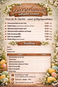 Hier können Sie einen Einblick in unseren Betrieb bekommen. Wir führen einen kleinen Familienbetrieb in der schönen Eifel wo wir uns täglich darum bemühen qualitativ hochwertige Geflügelprodukte herzustellen. Dabei liegt uns das Wohl unserer Tiere, der nachhaltige Umgang mit der Natur sowie die Zufriedenheit unserer Kunden sehr am Herzen.